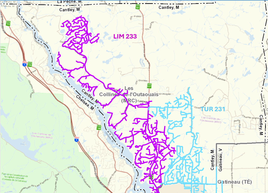 Dans le cadre de l’entretien du réseau électrique, Hydro-Québec a récemment débuté ses travaux de végétation pour les secteurs desservis par la ligne LIM 233 Cette ligne de distribution alimente près de 2 000 clients dans la municipalité de Cantley, soit dans les districts des Monts, de la Rive et des Parcs (voir carte ci-dessous). Ces travaux se poursuivront au cours des six (6) prochains mois.