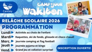 Vous avez des questions concernant le camp de jour Wakiton ? Contactez le Service des loisirs à loisirsculture@cantley.ca ou au 819 827-3434 poste 6816.