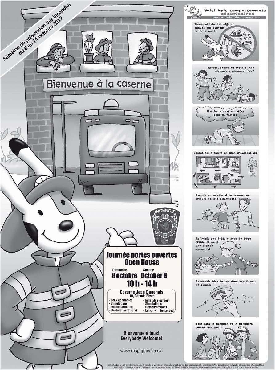 La semaine culminera le 12 octobre avec les portes ouvertes de la caserne Jean-Dagenais, qui chaque année remporte un succès grandissant. Pour l’occasion, les portes de la caserne seront ouvertes de 10 h à 16 h le samedi 12 octobre. Pour plus d’informations concernant l’événement visitez la page Municipalité de Cantley | Portes ouvertes de la caserne Jean Dagenais.